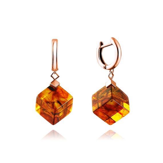 Stilvolle Ohrhänger aus 925 Silber mit Bernsteinwürfeln