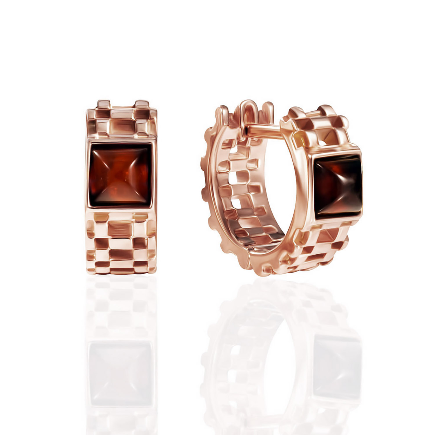 Diese ausdrucksstarken Ohrringe aus 925er vergoldetem Sterlingsilber begeistern durch ihr raffiniertes Design und die warme Ausstrahlung von echtem Bernstein. Im Zentrum jedes Ohrrings befindet sich ein quadratisch gefasster Bernstein in satten Cognac-Tönen, dessen natürliche Einschlüsse dem Schmuckstück Lebendigkeit und Individualität verleihen.Die strukturierte Oberfläche des Silbers, kombiniert mit den geometrischen Elementen, verleiht den Ohrringen eine moderne, leicht grafische Optik. Der warme Glanz des Bernsteins harmoniert perfekt mit dem Metall und sorgt für einen eleganten, aber dennoch markanten Look.