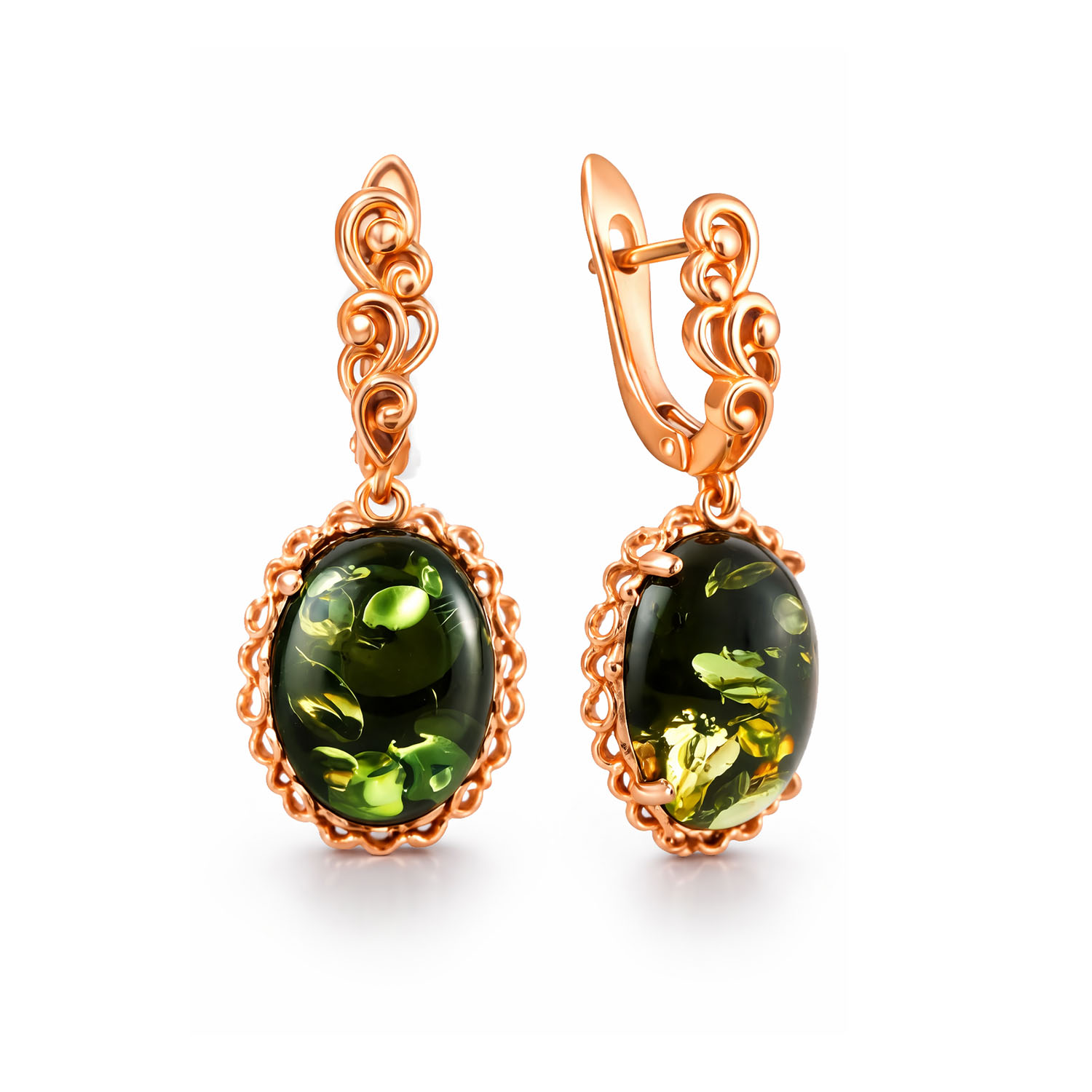 Vergoldete Ohrringe aus 925 Silber mit ovalem grünem Bernstein im Vintage-Rahmen
