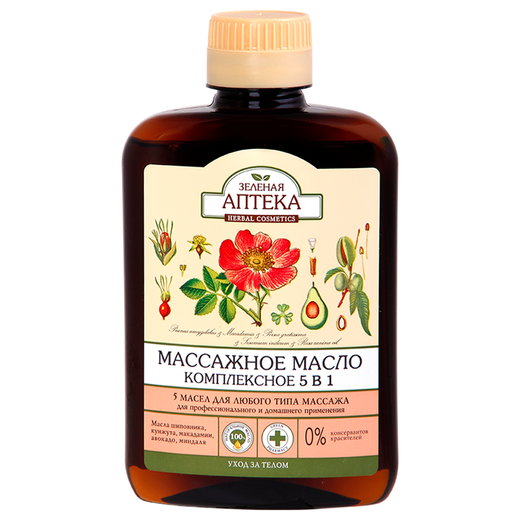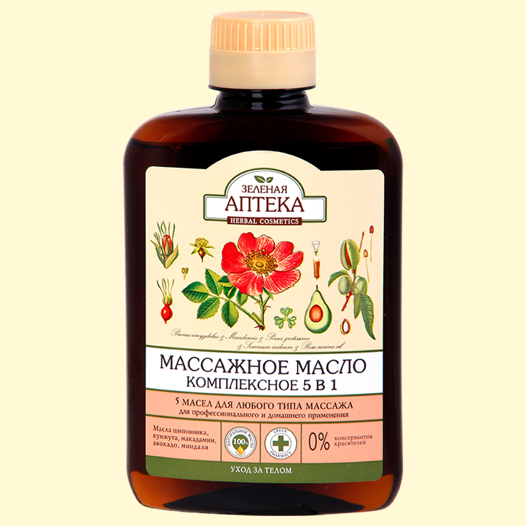 Eine der angenehmsten Arten, die Haut des Körpers zu pflegen, ist die Massage. Wird sie regelmäßig durchgeführt und mit einem hochwertigen Massageöl kombiniert, erwartet Sie ein beeindruckendes Ergebnis. Die bekannte Marke Grüne Apotheke präsentiert das „Massageöl 5 in 1 – Komplexe Wirkung“. Es handelt sich um eine duftende Komposition ätherischer Öle, die der Haut ein gepflegtes Aussehen und eine wundervolle Geschmeidigkeit verleiht.