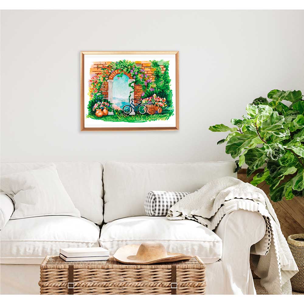 Bei diesem Set ist die Leinwand auf einen Holzrahmen gespannt, sodass Sie sie nicht zusätzlich einrahmen müssen. Das fertige Werk kann sofort an die Wand gehängt oder mithilfe der im Set enthaltenen Spezialhalterungen in ein Regal gestellt werden.