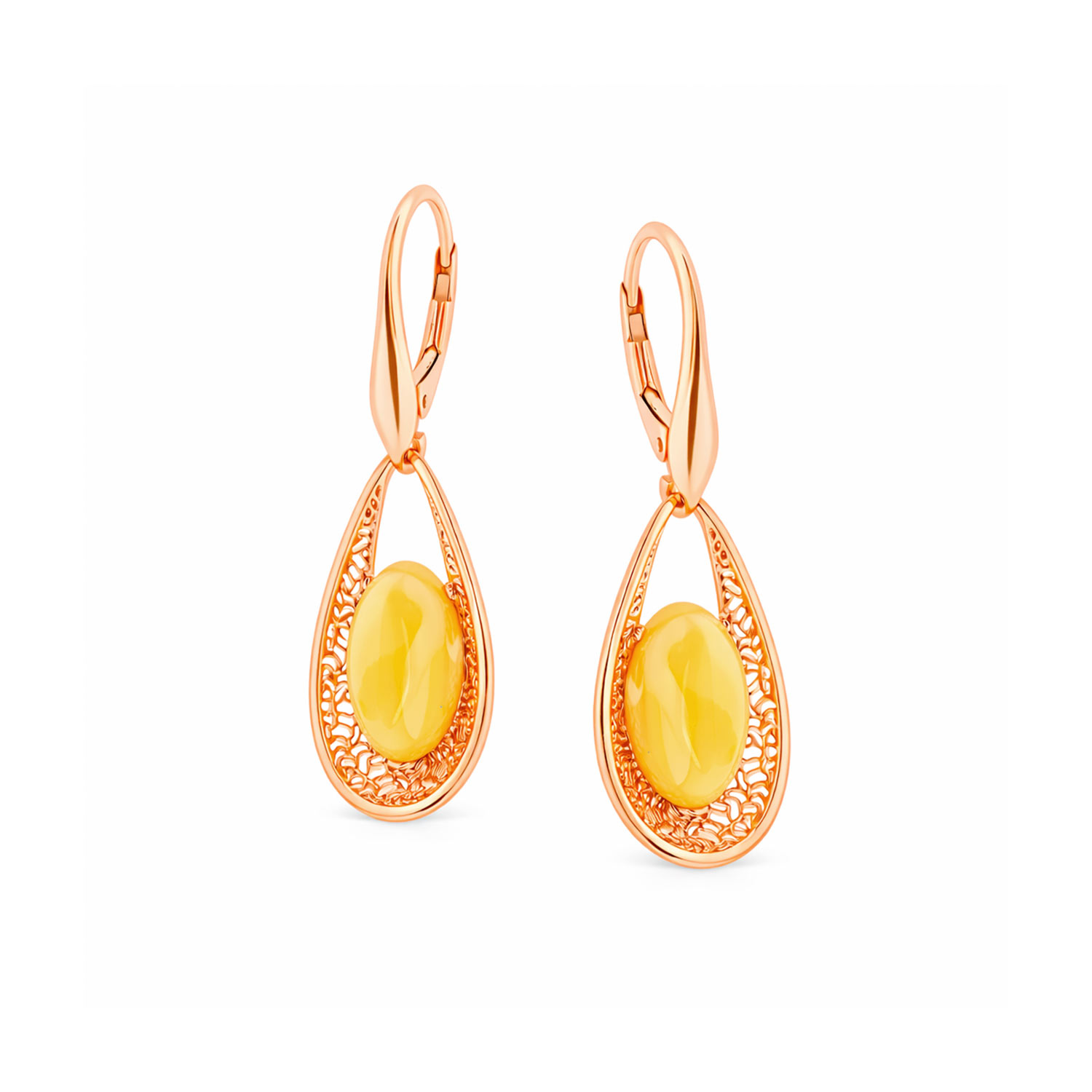 Ohrhänger aus 925 Silber mit Milchbernstein, rotvergoldet