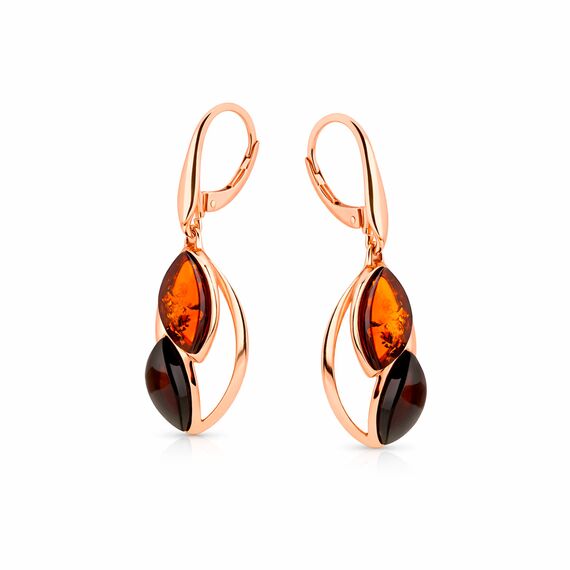 Ohrhänger aus 925 Silber mit Cognac- und Kirschbernsteinen, rotvergoldet