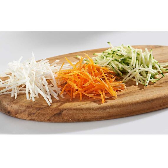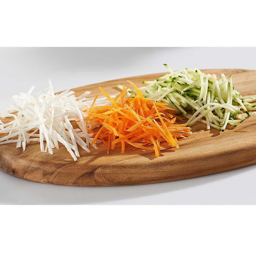 Mit der Original Börner Roko Reibe können Sie Obst und Gemüse sowie Käse zu dünnen Julienne Streifen.Beidseitig geschliffene Messerreihen reiben große Produktmengen in kurzer Zeit.