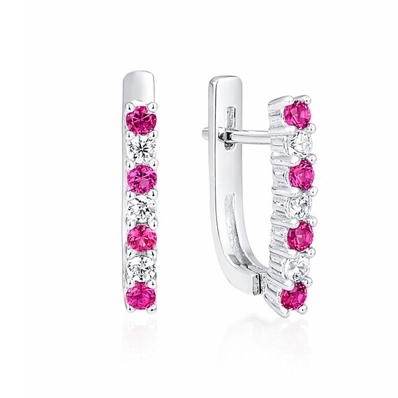 Sokolov Ohrringe aus 925 Silber mit farblosen Zirkonia und rosa HTS Rubinen