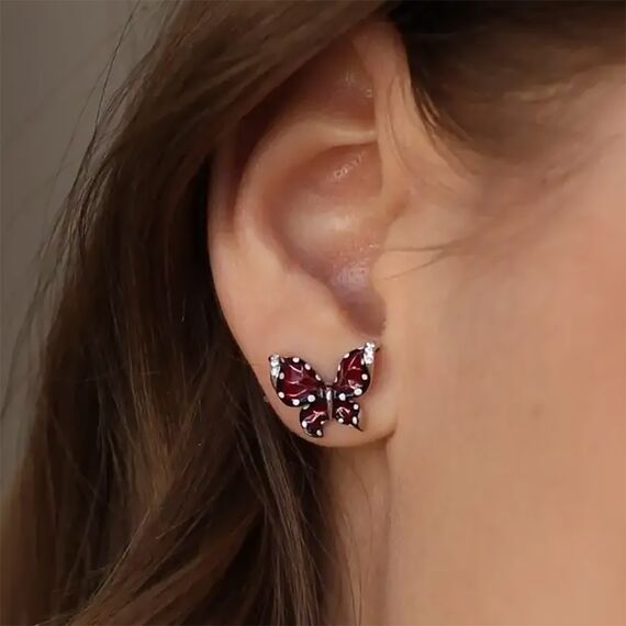 Sokolov Kinder Ohrstecker Schmetterlinge aus 925 Silber mit roter Emaille und farblosen Zirkonia