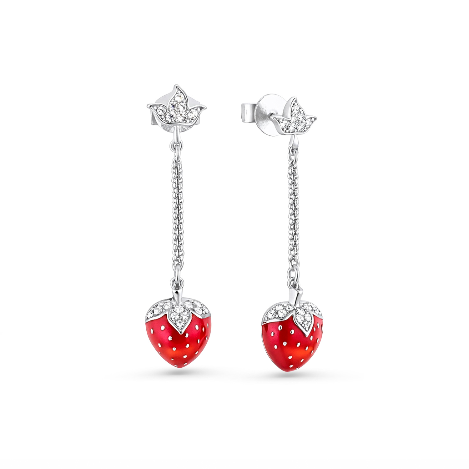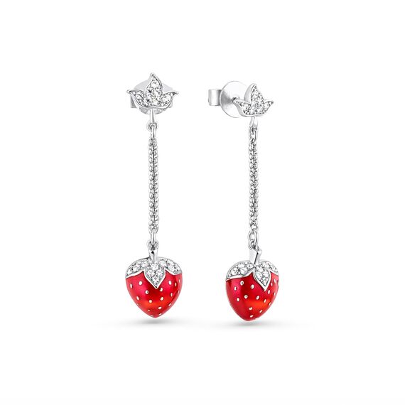 Sokolov Ohrhänger Erdbeere aus 925 Silber mit roter Emaille und farblosen Zirkonia