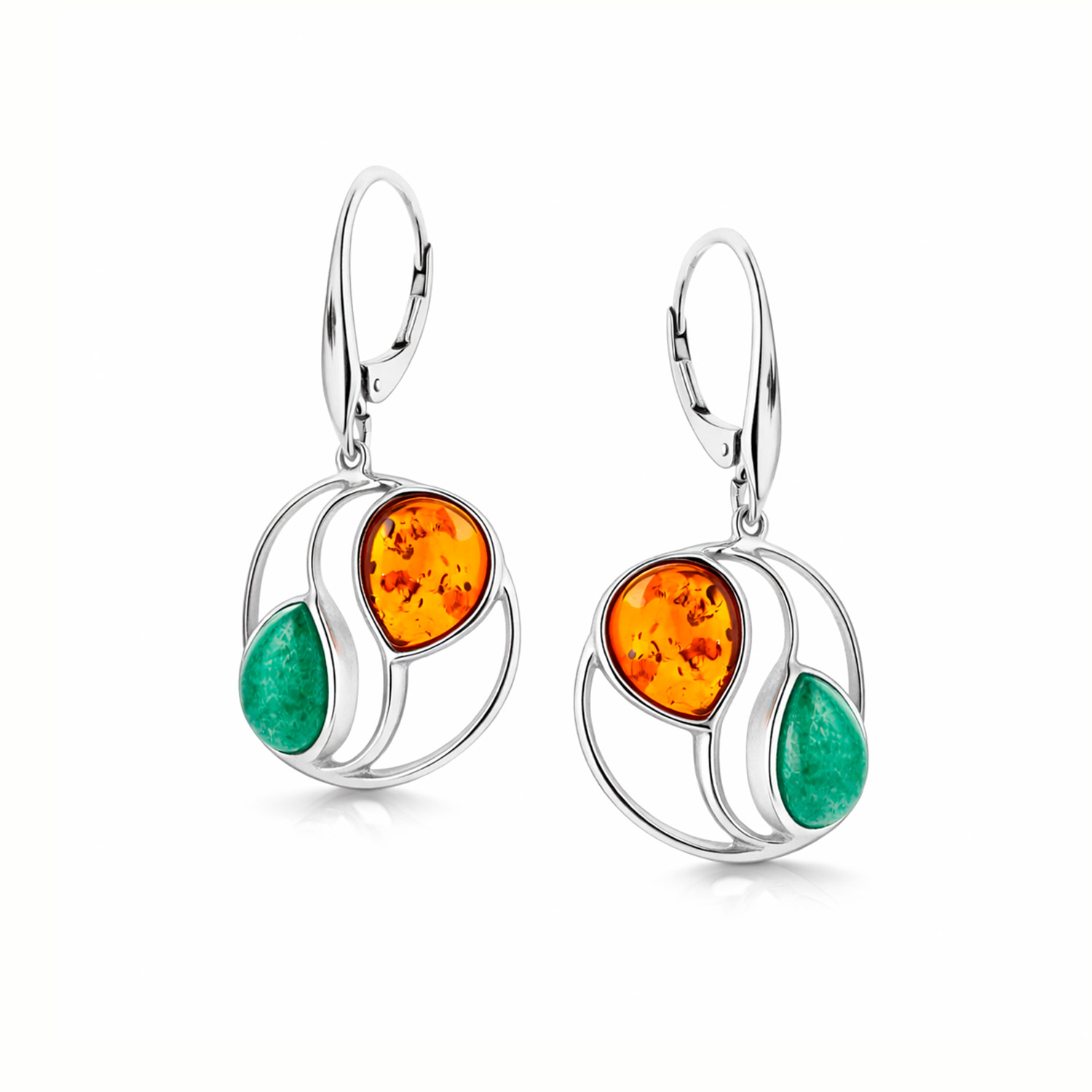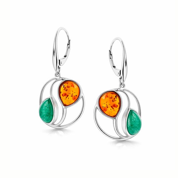Ohrhänger aus 925 Silber mit Cognac-Bernstein und grünem Quarz