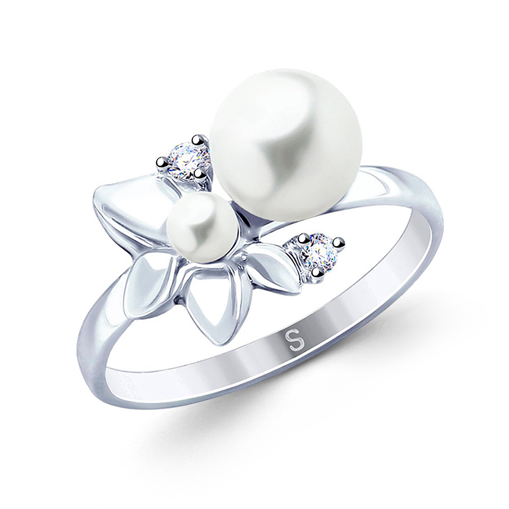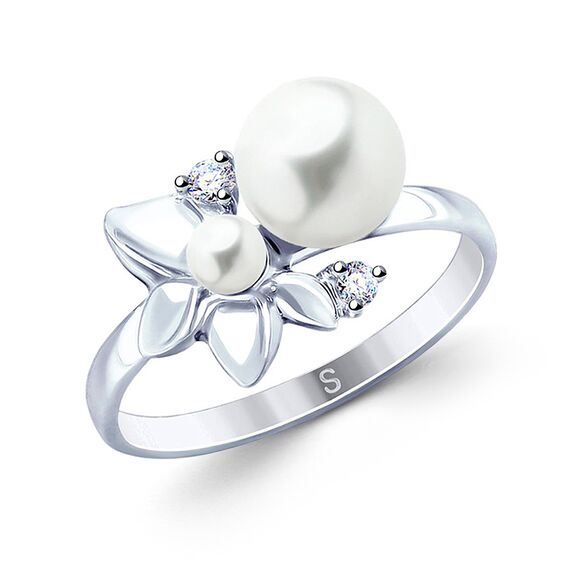 Damenring aus 925 Silber mit Perlen und Zirkonia von SOKOLOV Gr-18mm