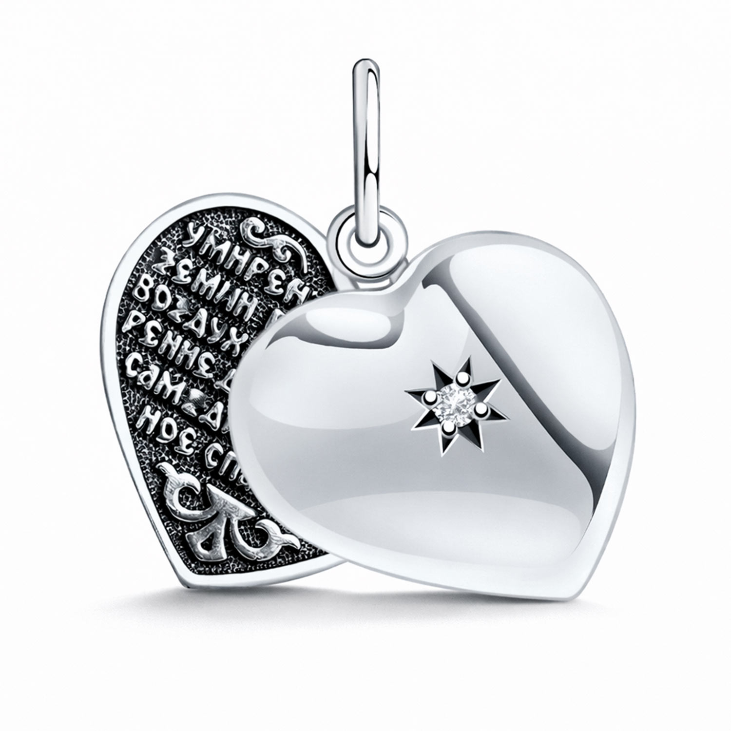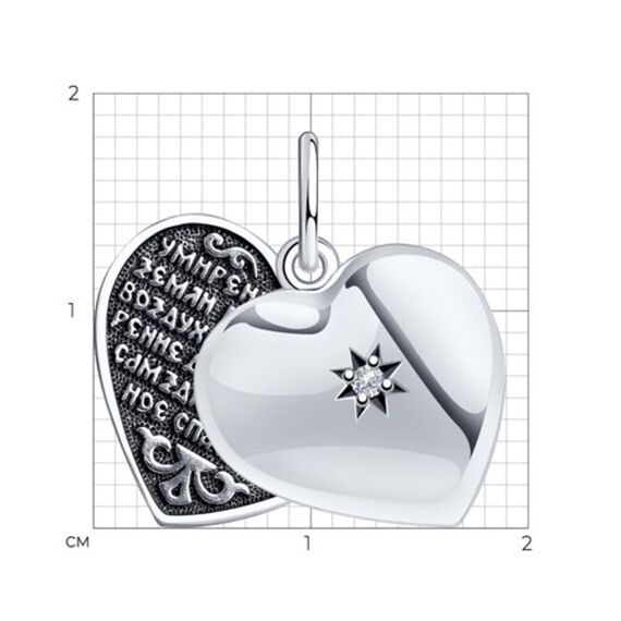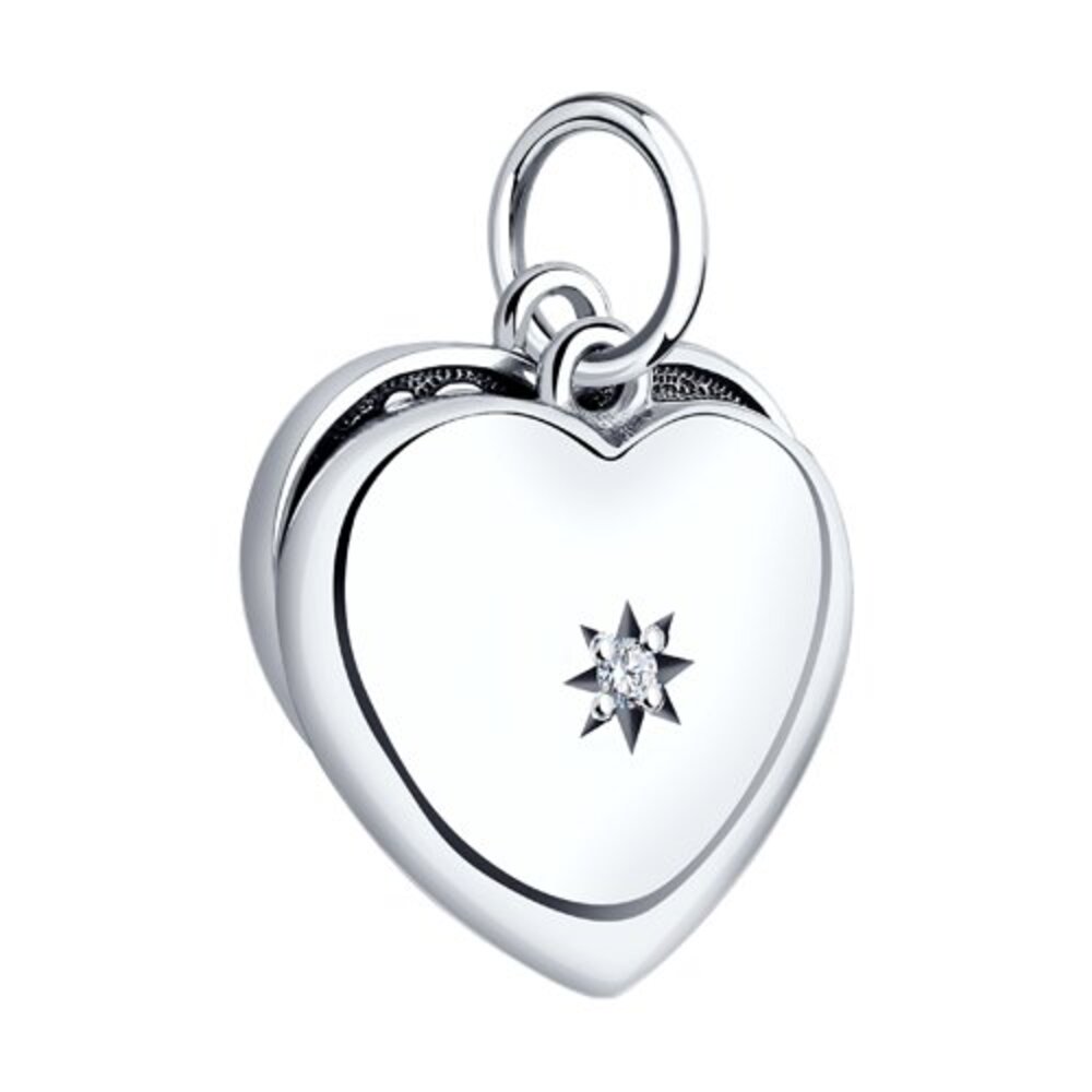 Doppelherz Anhänger aus 925 Silber mit Zirkonia, Peter und Fevronia mit Innen-Beschriftung von DIAMANT