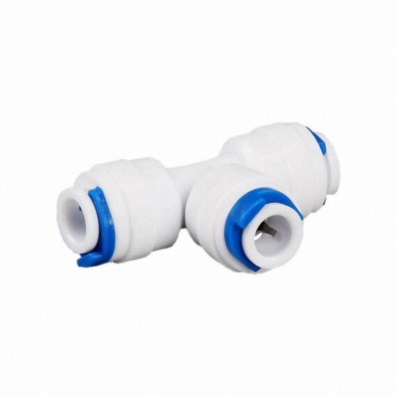 - T-Stück Verbinder Kupplung ein hochwertiges Zubehör aus Kunststoff für den Einbau von Ersatzfiltern, Filtergehäusen und Umkehrosmose Wasserfilteranlagen mit bewährter Quick & Easy Fittingverschluss Technologie