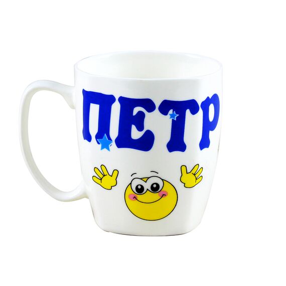 Der Becher ist aus umweltfreundlichem, hochwertigem Porzellan mit feinem Glanz gefertigt. Er hat ein attraktives thematisches Design in Form eines Schriftzuges auf russisch "Peter".Dieser stylische Becher ist ideal für den täglichen Bedarf - ob im Büro oder Zuhause.