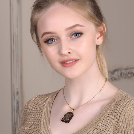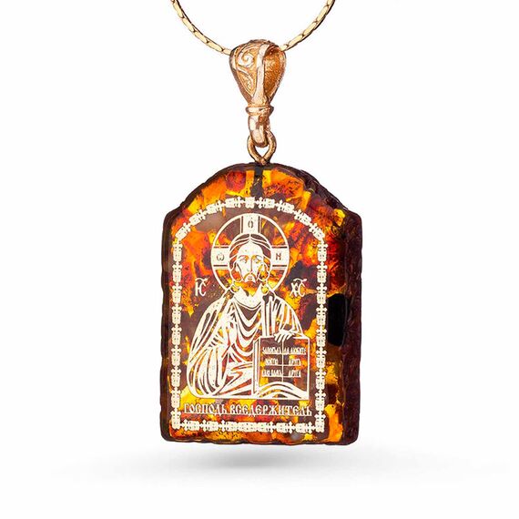 Anhänger Ikone aus Naturbernstein mit dem vergoldeten Antlitz des allmächtigen Gottes