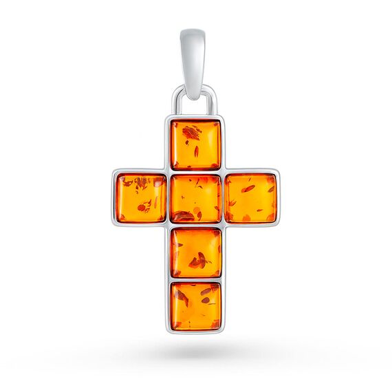 Kreuz Anhänger aus 925 Silber mit Bernstein