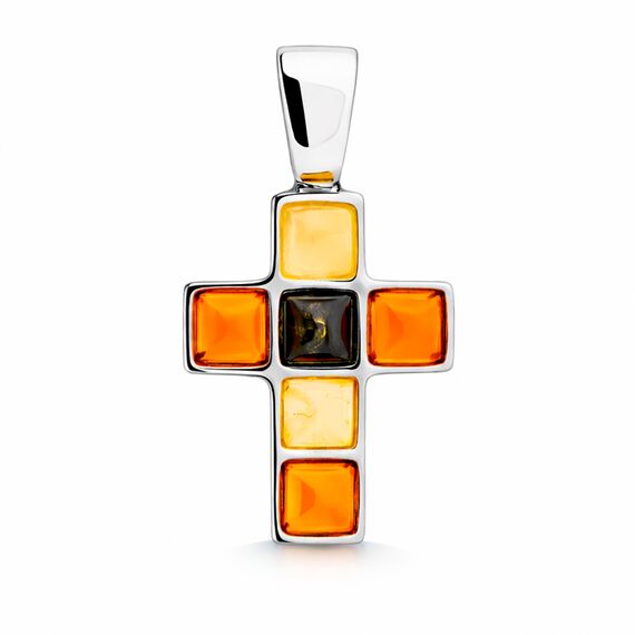 Kreuz Anhänger aus 925 Silber mit Bernstein