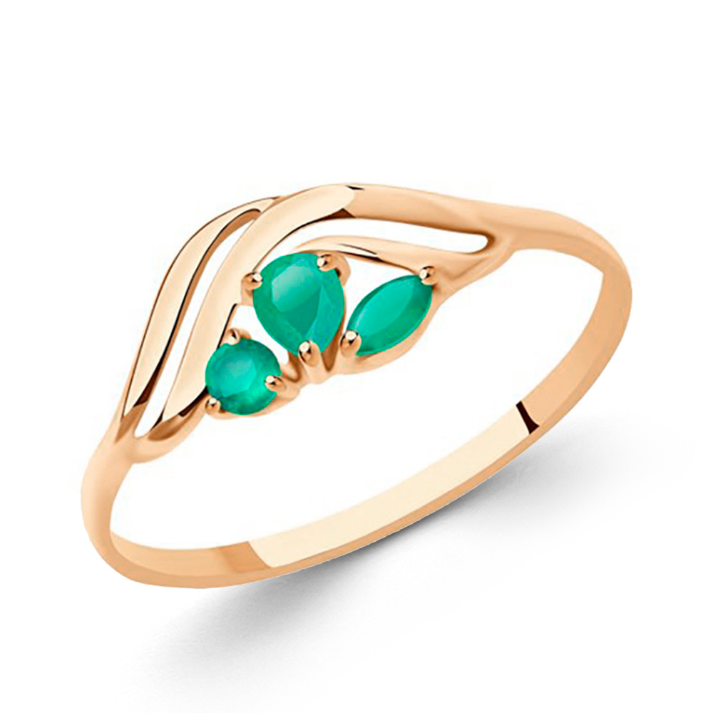 Sokolov Damenring aus 585 Rotgold mit grünem Achat Gr-18mm