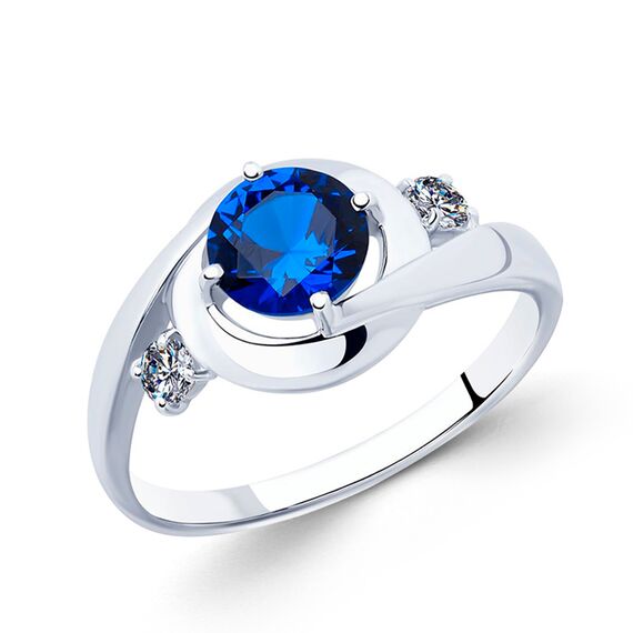 Damenring aus 925 Silber mit blauen und farblosen Zirkonia von SOKOLOV Gr-18mm