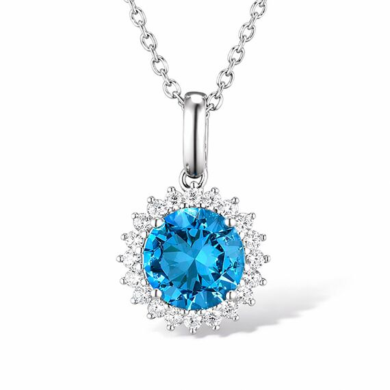 Anhänger aus 925 Silber mit farblosen Zirkonia und blauem Nano-Topas