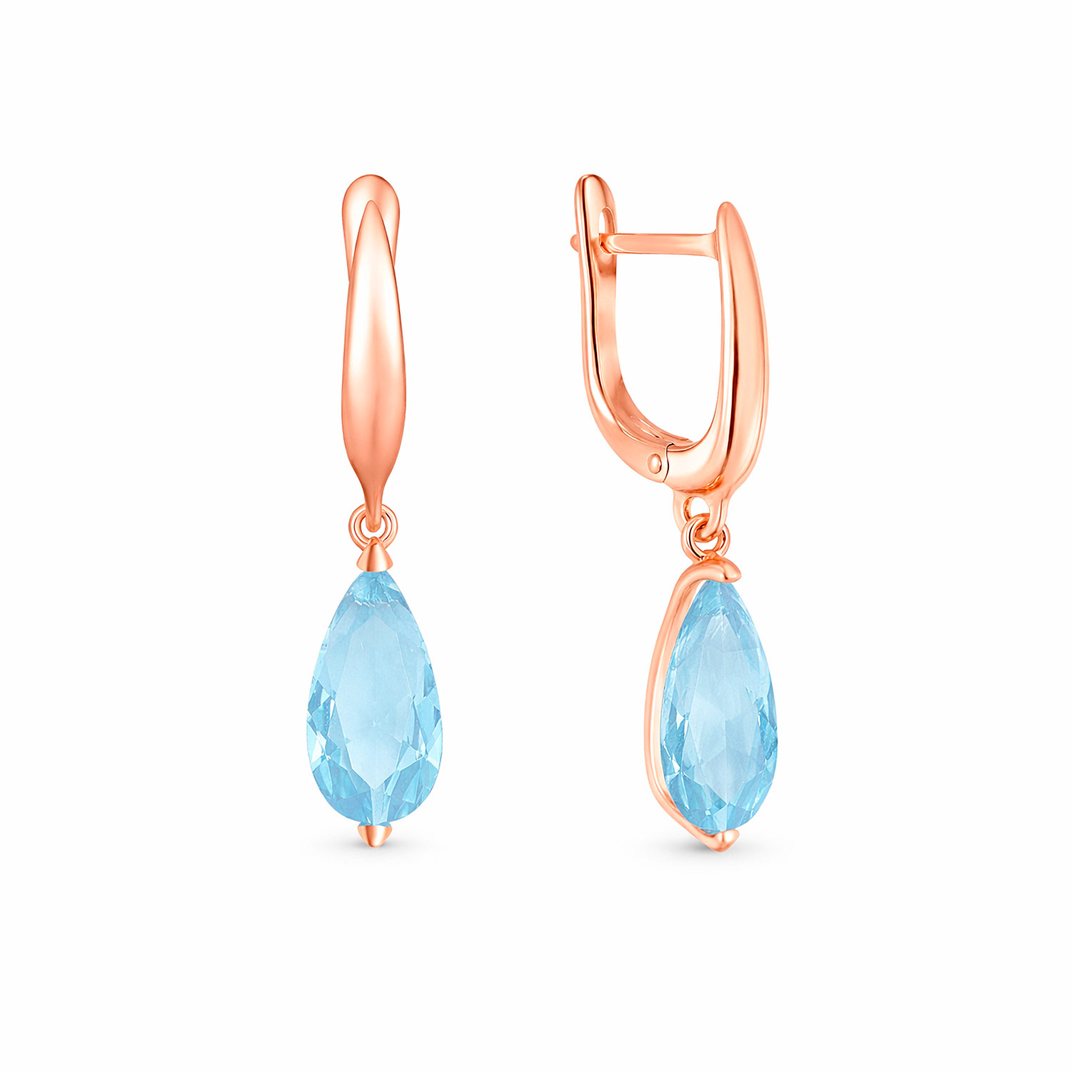 Ohrhänger aus 585 Rotgold mit blauem Topas