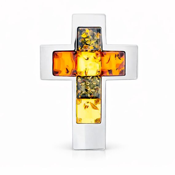 Kreuz Anhänger aus 925 Silber mit Bernstein