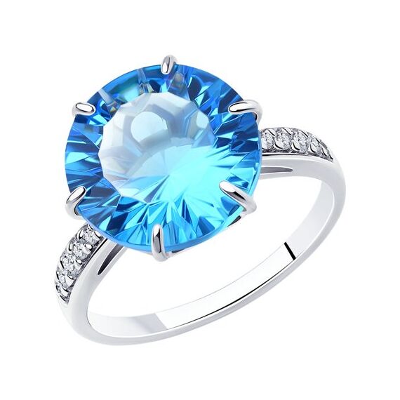Diamant Damenring aus 925 Silber mit blauem Mineralglas und Zirkonia
